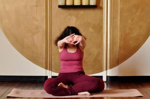 1. лечь на спину, подложив под спину в области Лопаток маленькую подушку или сложенное полотенце. Соединить ступни между собой, раздвинуть колени в стороны и выровнять дыхание. Несколько минут полежать в расслабленном положении.