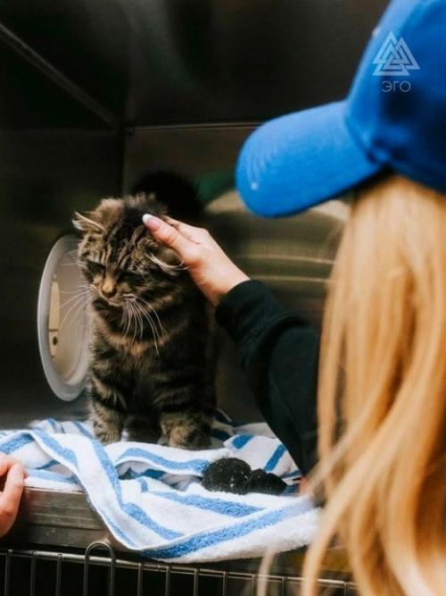 Она не только упаковывает вещи, но и проявляет заботу о животных, посетив приют, где погорельцы оставляют своих четвероногих друзей на временное содержание .