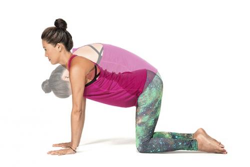 Встаньте на колени, ладони находятся точно под плечами, пальцы направлены вперёд. Вес тела равномерно распределён в ногах и руках. На вдохе начинайте прогибать спину, раскрывая грудной отдел и вытягиваясь вперёд.