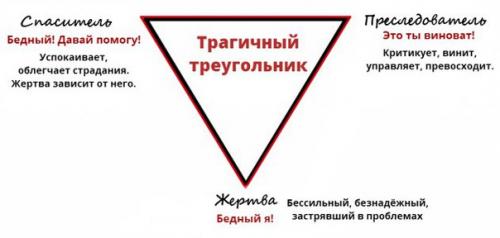 В своей книге The Power of TED Дэвид эмералд (David Emerald) называет психологию жертвы страшным трагичным треугольником. Модель этого треугольника разработал доктор Стивен карпман (Steven Karpman) ещё в 1960 году, но она актуальна и по сей день. Мы постоянно играем одну из трёх ролей этого треугольника или все три по очереди.