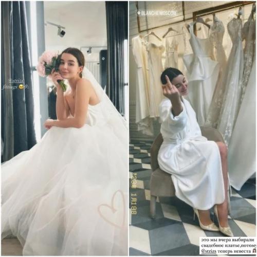 Девушка уже вовсю готовится к тожеству и выбирает белое свадебное платье.