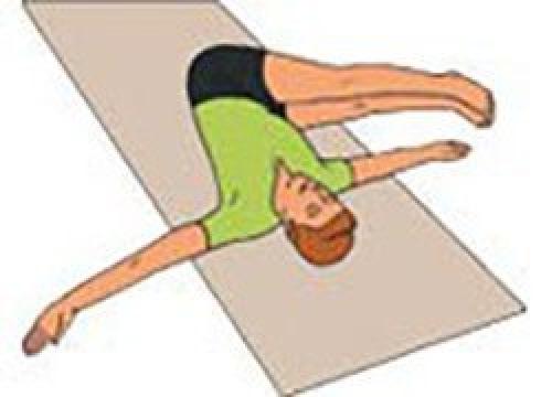 Оздоравливает органы брюшной полости и ликвидирует жировые отложения в области живота. Опускайте прямые ноги поочередно к правой и левой ладони, удерживая стопы по 20 секунд над каждой рукой.
