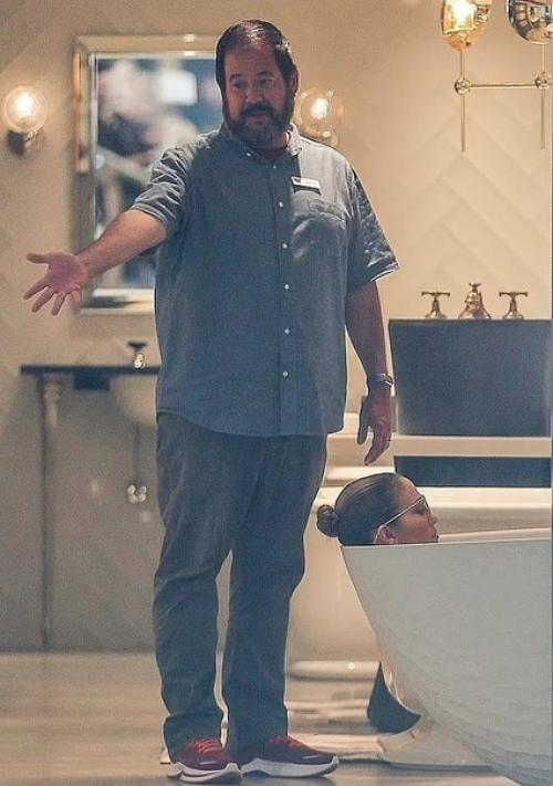 Сейчас пара обустройством нового семейного гнездышка занята. На днях Лопес сфотографировали папарацци в магазине сантехники. Звезда со всей ответсвенностью подошла к выбору и провела тест - удобно ли ей будет лежать в этой ванне?