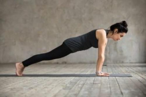 - Поднять туловище вверх, опираясь на руки и пальцы ног. Конечности должны быть прямыми.