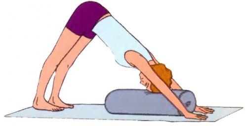 По возможности оставайтесь в позе дольше, примерно 1-3 мин. Активно работайте руками и ногами, отталкивайтесь ладонями от пола. Голова опоры верхней частью лба касается. Чтобы давление головы на опору не увеличивалось, сильнее отталкивайтесь руками. Дышите ровно и спокойно. Удлиняйте передние стороны бедер от колена к тазу.