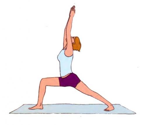 Эта поза одна из самых тяжелых для гипотоников, но она поднимет тонус. Прижимайте к полу внутренний край правой стопы и внешний край левой. Отводите назад внешнее правое бедро и внутреннее левое. Направьте крестец вниз, а ребра спины вперед и вверх. Тянитесь вверх руками от внутреннего бедра левой ноги.