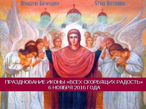Верующие люди будут отмечать день особенного почитания иконы 6 ноября 2016 года. Ежегодно в этот день поклоняются иконе божией матери "Всех Скорбящих Радость". На ней чаще всего можно увидеть следующее изображение: богородица находится в окружении страждущих людей, над ней изображена святая троица а левой рукой дева Мария нередко держит младенца. Чудотворные иконы - настоящее сокровище, обретенное свыше, поскольку они могут помогать людям в недугах и сложных жизненных ситуациях. Именно такой и является икона "Всех Скорбящих Радость".