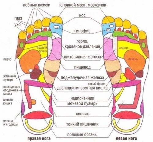 К примеру, приступы кашля можно смягчить, помассировав точку трахеи - номер 5 на схеме. Точки 12 - желудок, 16 - кишечник, 20 - тонкий кишечник напрямую "Посылают" сигналы в область всего пищеварительного тракта. Давление на глазную точку 3 помогает снять с глаз усталость и перенапряжение. Узкая полоса внутренней поверхности подошвы, между точками 4 и 22, ведет диалог со всем позвоночником и его связочным аппаратом. Надавливая на точку 29, отвечающую за сердце, можно снять сердцебиение, учащенное дыхание и вернуть бодрость. Ежедневные растирания области точек 17 и 18, ответственных за мочеполовую систему, избавляют от циститов, даже тех, которые перешли уже в разряд хронических. Точки 12 - желудок, 16 - кишечник. Давление на глазную точку 3 помогает снять с глаз усталость и перенапряжение.