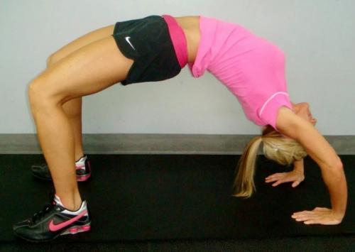 Из положения лежа на полу прогибание с одновременным подъемом вверх ног и туловища.