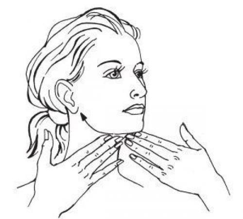 9. заведите 4 сомкнутых пальца под нижнюю челюсть. Давящими поглаживаниями перемещайтесь вдоль челюсти от подбородка к ушам.