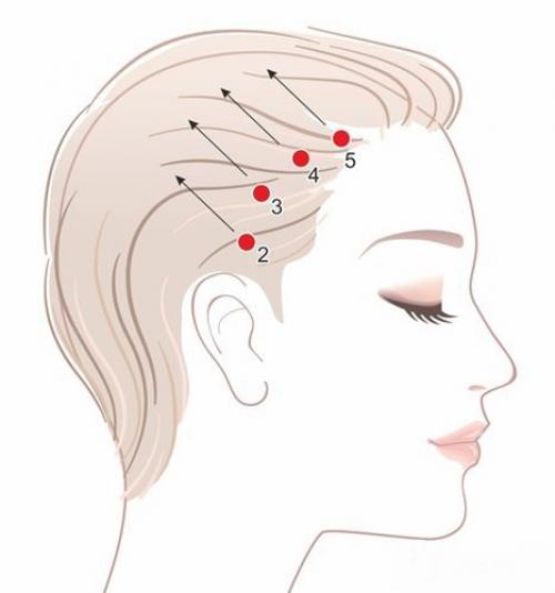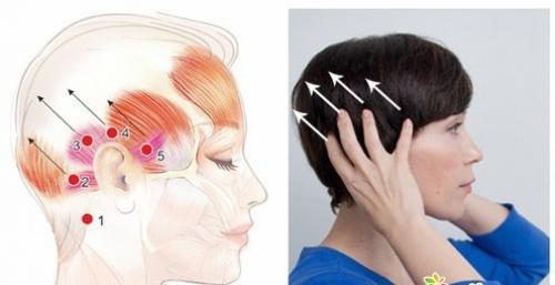 Исходное положение: сидя или стоя, позвоночник выпрямлен. Аккуратно поставьте подушечки пальцев на кожу за и над ушами. При этом большой палец лежит в ямке за ухом, чуть пониже него; мизинец - в височной ямке, остальные пальцы распределяются между ними вокруг уха по обозначенным точкам (1 - большой палец, 5 - мизинец:
