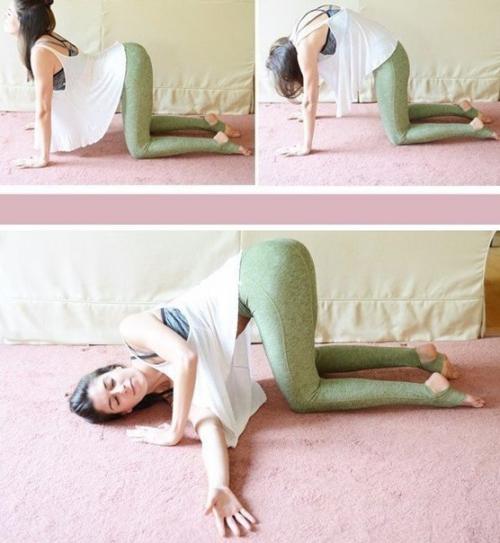 2. отдыхаем и расслабляемся в позе ребенка. Садимся на колени и ложимся, руки вытягиваем вперед.
