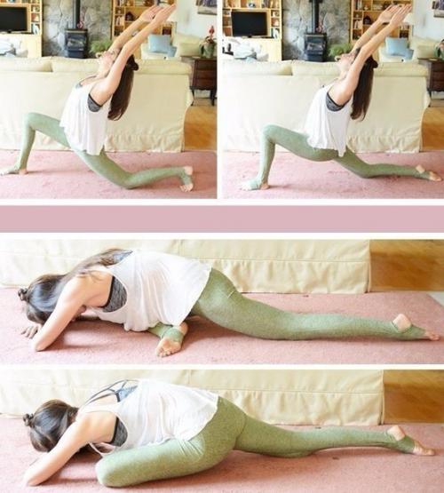 5. сгибаем колено, вторую ногу вытягиваем. Расслабляемся.