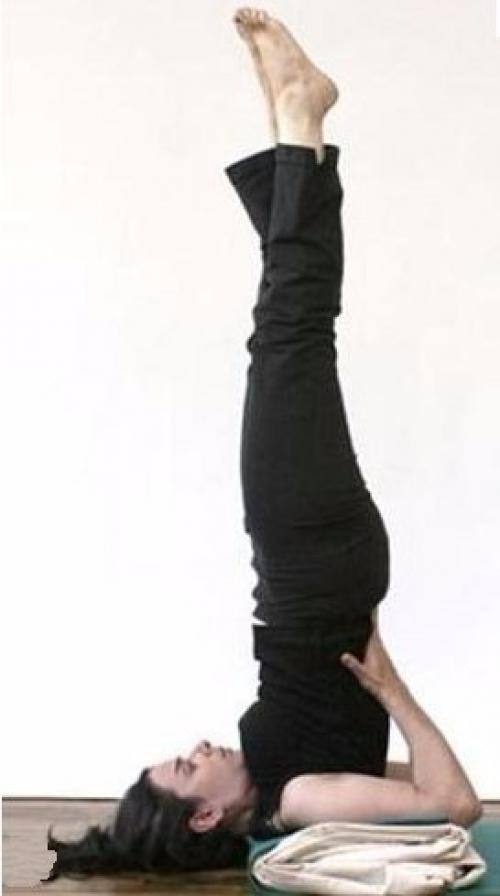 4. стойка на плечах: из положения лёжа на спине поднимите ноги на 90\xB0, затем приподнимите торс и подхватите нижнюю часть спины руками, опираясь на локти. Держите торс перпендикулярно полу и распределите вес тела на шею и плечи. Подбородок в грудь упирается. Глубокое медленное дыхание. Это упражнение создаёт давление на все органы и стимулирует работу щитовидной железы.