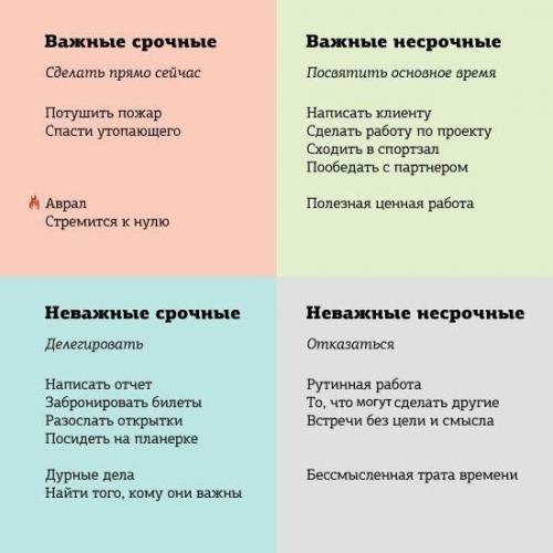 Главная идея матрицы эйзенхауэра заключается в том, чтобы научиться отличать срочные дела от важных, а также отбросить занятия, выполнение которых не приносит в последствие никакой пользы.
