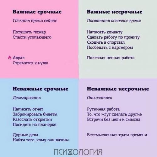 Важные несрочные дела наибольшую отдачу приносят. Это работа над личными и профессиональными проектами, спорт и языки, здоровье, новые клиенты. Уделяя этим задачам достаточно времени, человек профессионально растет и добивается успеха. Это задачи про вас, ваш личный путь и то, что вам важно.