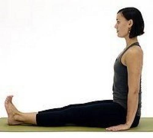 Дандасана 7. заканчивая предыдущее упражнение, согните колени и опустите ноги на пол. Теперь, сядьте так, чтобы ноги оказались выпрямленными вперед, руки упираются в пол с боков, спина прямая. Постарайтесь выпрямить спину. Насколько можно, дышите без задержек.