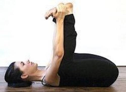 Из положения сидя на полу с выпрямленными ногами - согните ноги, подтяните их к себе, обхватив руками, и мягко перекатитесь в положение лежа на спине. Бедра прижаты к животу, ноги согнуты в коленях под углом 90 градусов, руки обхватывают стопы. Дышите нормально. Старайтесь прочувствовать, как распрямляется позвоночник по всей длине. Шею не напрягать. Находитесь в позе в течение 10 дыханий или сколько вам удобно. Дышите не быстро, в среднем, естественно темпе, даже лучше, в слегка замедленном. После этого просто опустите ноги и руки на пол, и полежите 2-3 минуты, дыша свободно и стараясь полностью расслабиться.
