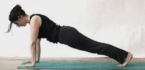 По сути, это вариант отжимания. Их предыдущей позы, примите положение при отжимании (верхнее положение. Теперь, с глубоким вдохом, медленно опуститесь на руках, почти касаясь пола. Задержитесь в этом положении на несколько секунд, затем с выдохом, медленно поднимитесь в исходное положение. Сделайте столько подходов, сколько сможете. Сильно не перенапрягайтесь.
